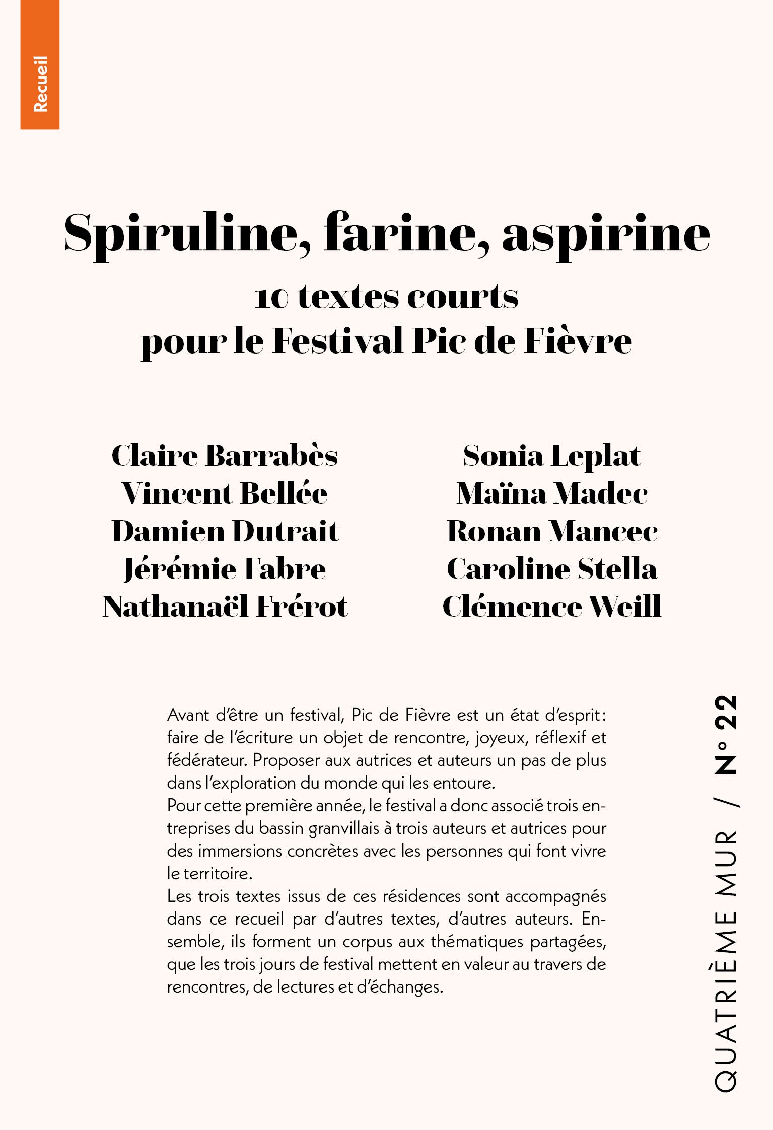 Les trois textes issus de ces résidences sont accompagnés dans ce recueil par d’autres textes, d’autres auteurs. Ensemble, ils forment un corpus aux thématiques partagées, que les trois jours de festival mettent en valeur au travers de rencontres, de lectures et d’échanges.